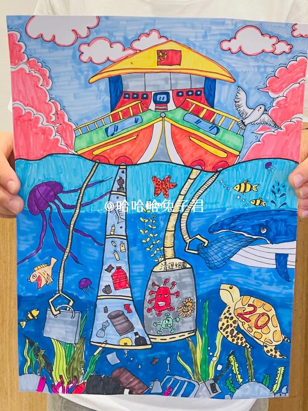 拒绝污染#美育 #创意美术 #儿童画 #保护海洋 #保护海洋环境