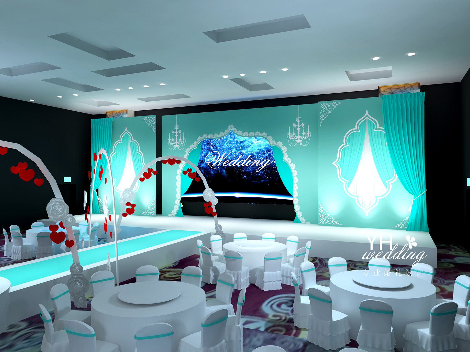 蓝色婚礼舞台布置效果图源文件psd源文件