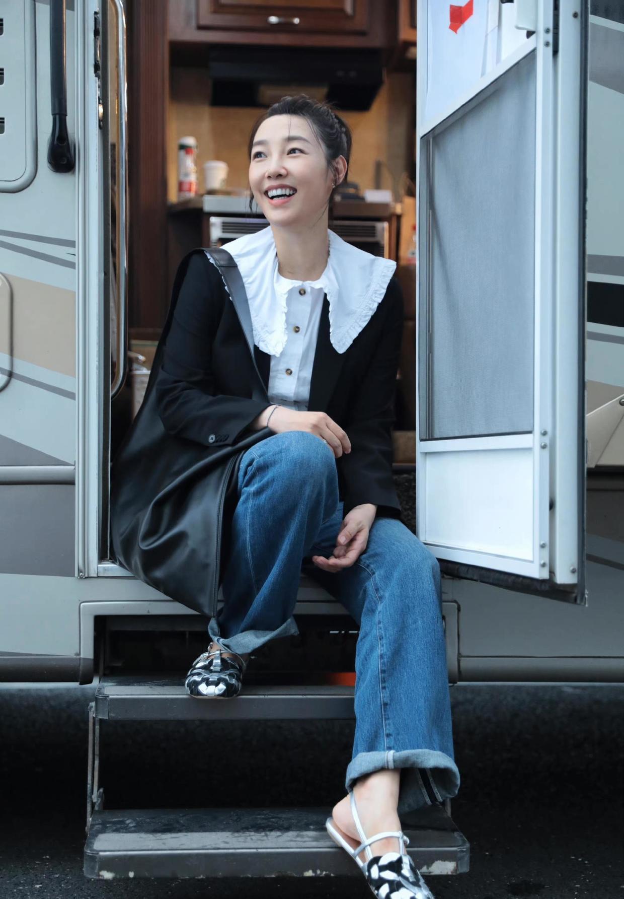 白百何的衣品是真的高,拼色卫衣配牛仔裤简单时髦,减龄又有活力