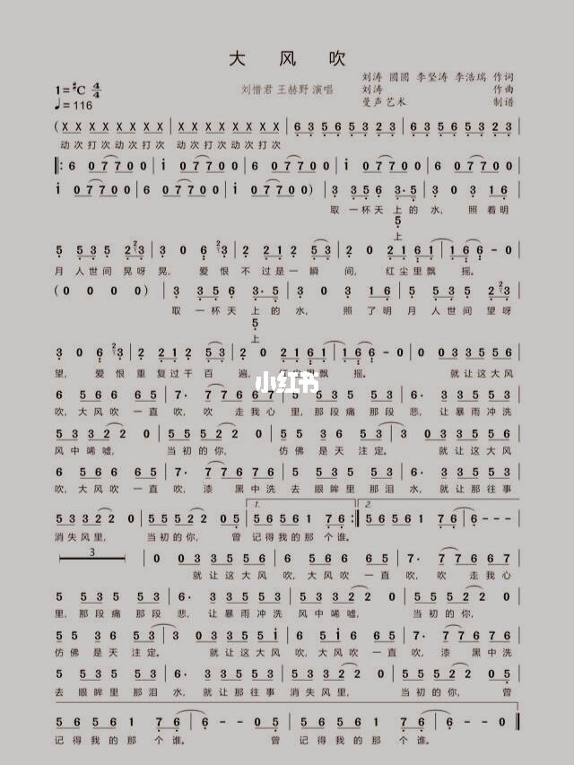 刘惜君王赫野《大风吹》数字简谱歌谱