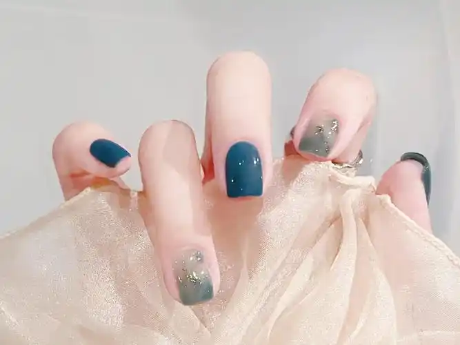 2021最新款蓝色撞色显白晕染美甲 【图】