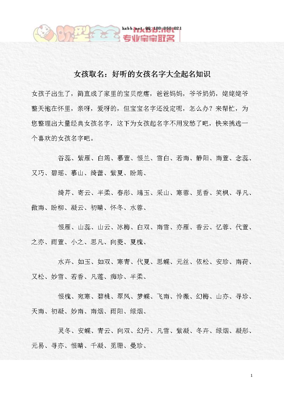 女孩取名:好听的女孩名字大全起名知识.doc