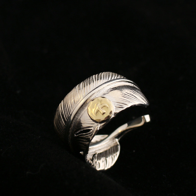 高桥吾郎羽毛戒指 村口工匠高桥吾郎goros素羽点金蔷薇花xl羽毛戒指银