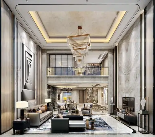 现代简约风格-盈科花园-双拼别墅-450平-客厅-装修实景效果图