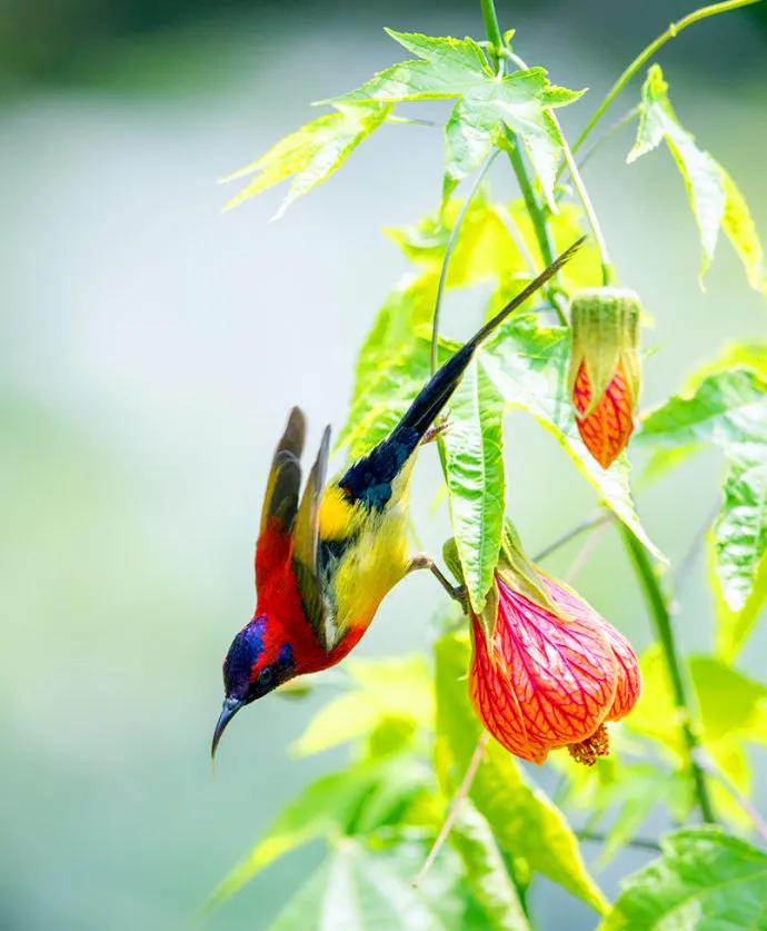 万千的花鸟世界,绮丽的绝美风光,喜庆的太阳鸟,给人带来吉祥_小鸟_很