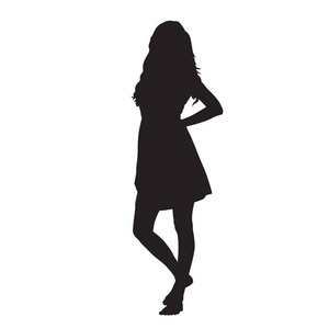 年轻女人夏天穿着站赤脚,矢量剪影照片