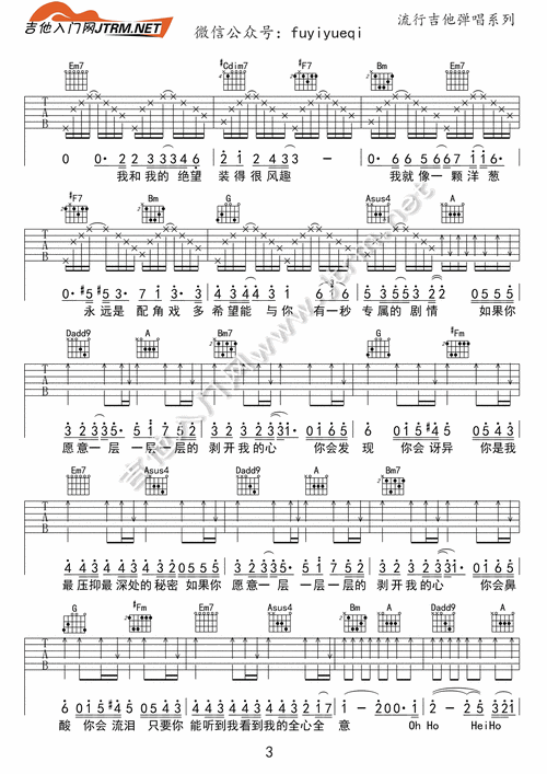 洋葱(甲壳虫琴行编配版)_吉他谱_搜谱网