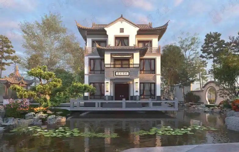 徽派新中式别墅设计,设计布局细心,层次感十足