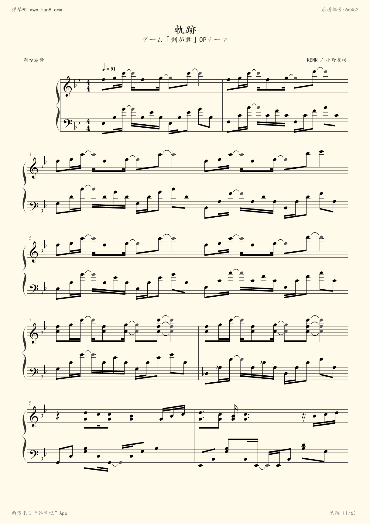 轨迹(文武贝版),轨迹(文武贝版)钢琴谱,轨迹(文武贝版)-钢琴谱,轨迹
