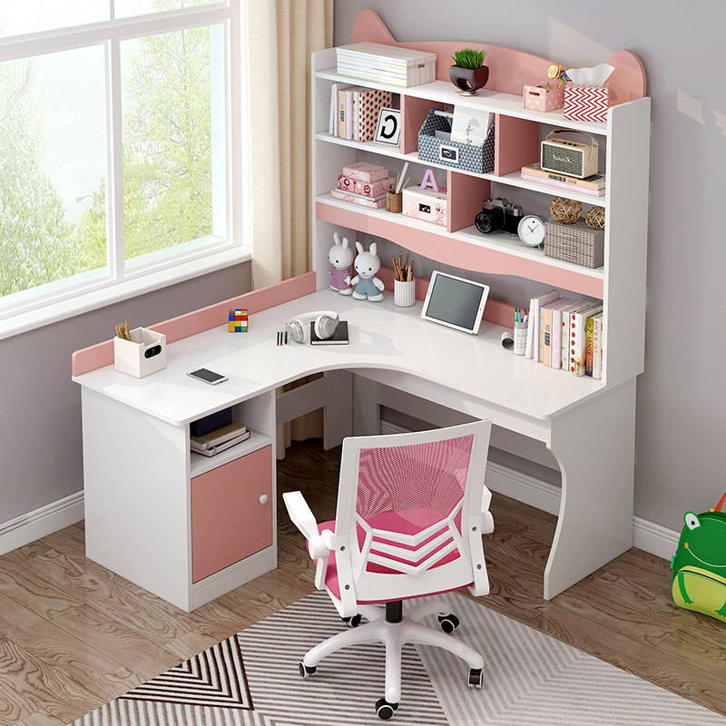 女孩儿童卧室书柜书桌一体家用小户型电脑桌转角书桌书架组合套装