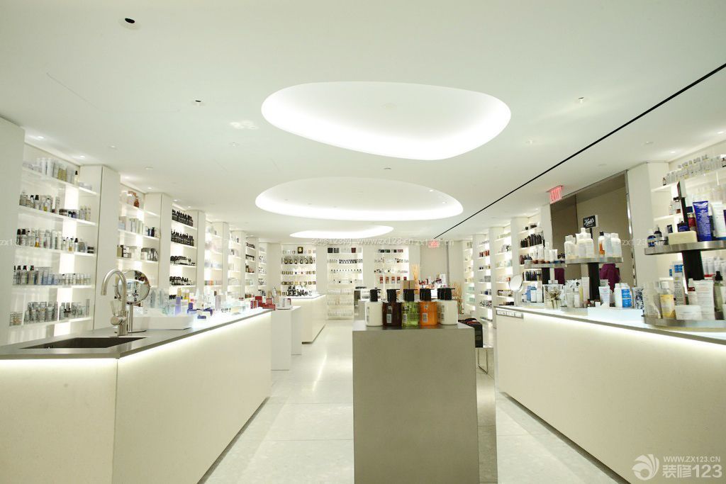 唯美化妆品店吊顶造型效果图_装修123效果图