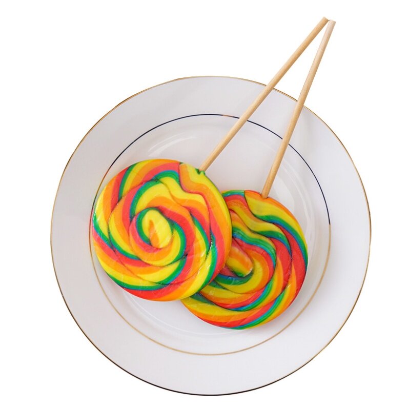 金稻谷七彩棒棒糖彩虹色无敌的超级大圆球旋转风车糖波板糖网红