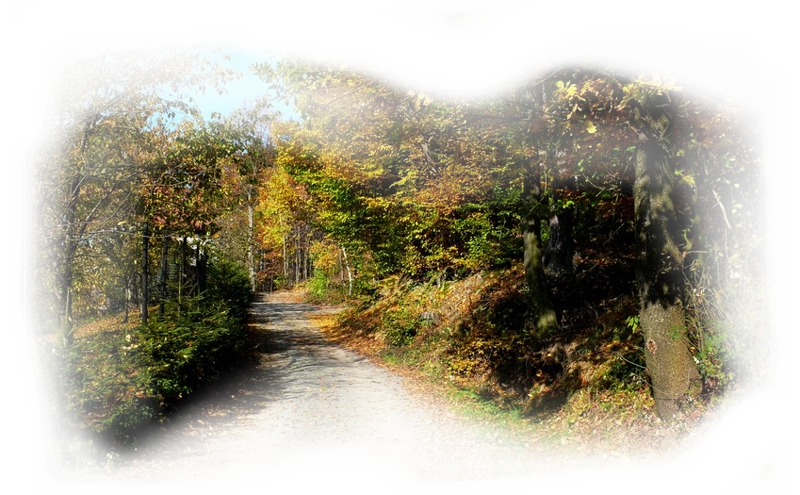 风景黄色树叶绿树道路h5背景素材
