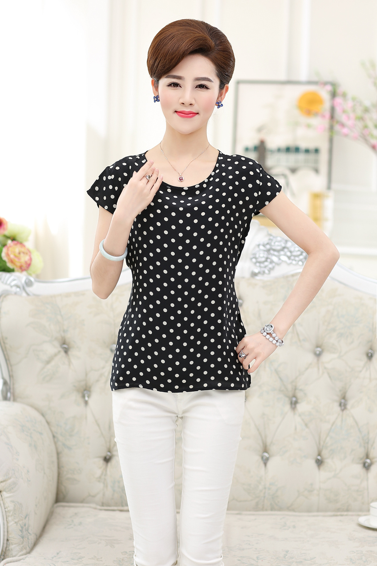 中老年女装夏装真丝桑蚕丝t恤上衣短袖印花时尚大码气质妈妈装女