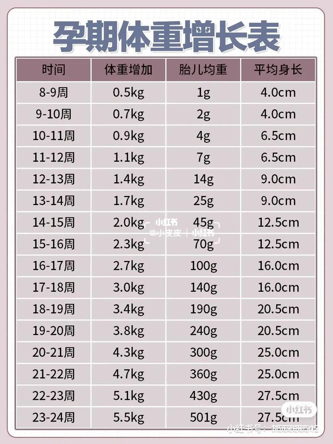孕期体重增长参考表60附孕期每周注意事项