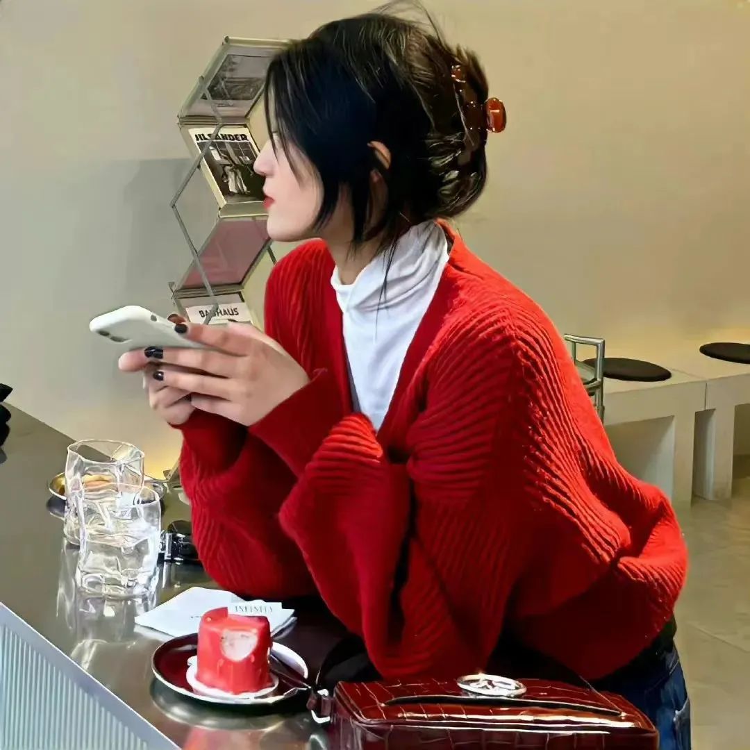 红色系氛围感女生头像