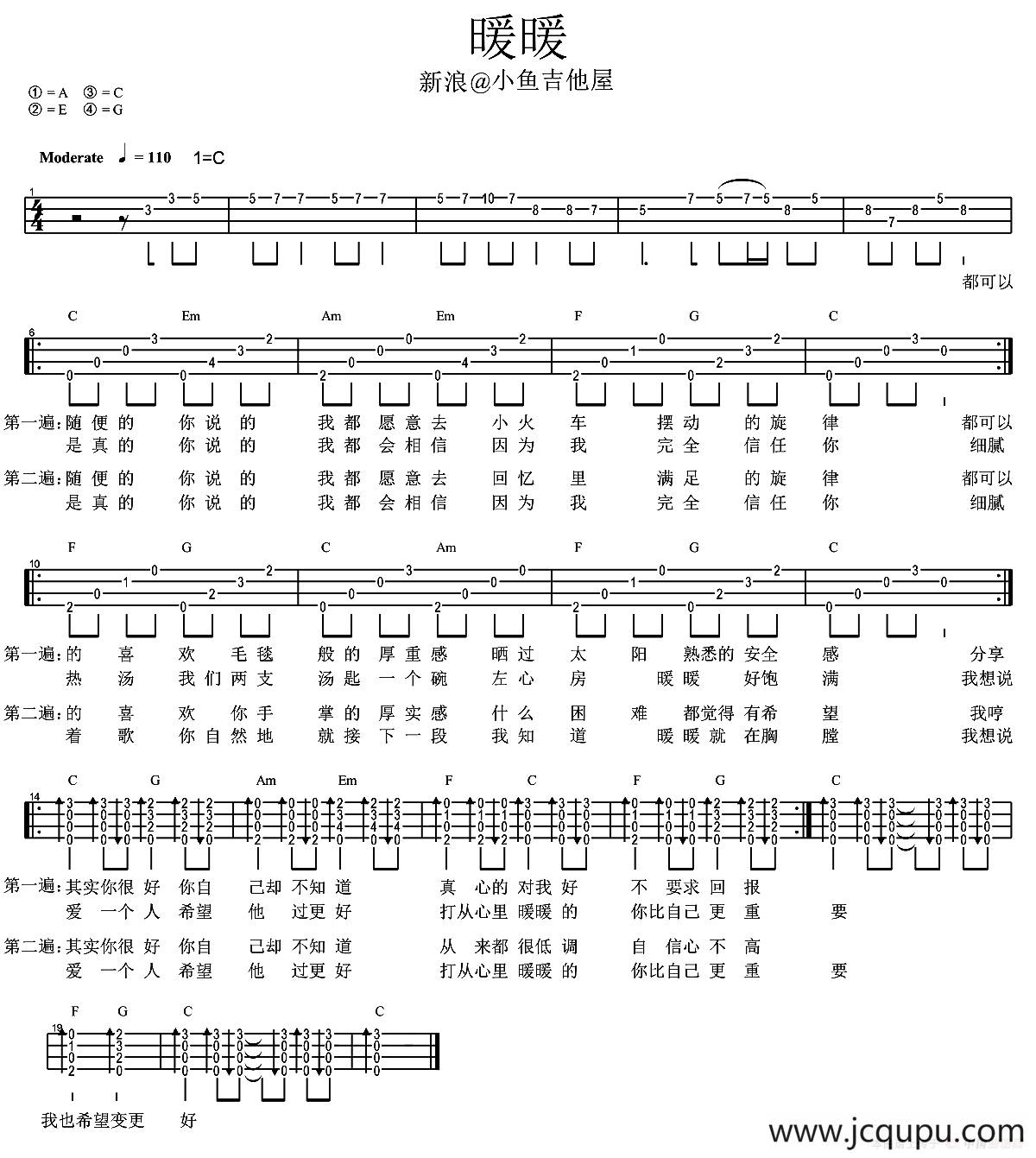 暖暖尤克里里谱弹唱版c调和弦谱靠谱ukulele编配梁静茹