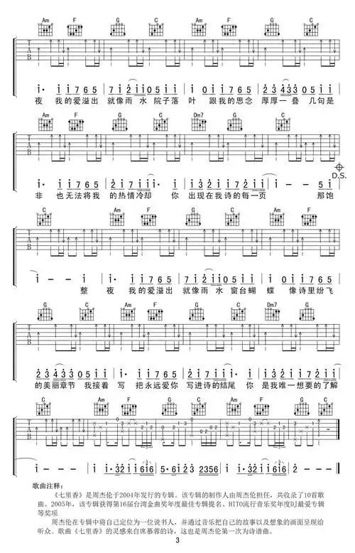 周杰伦《七里香吉他谱》c调超原版