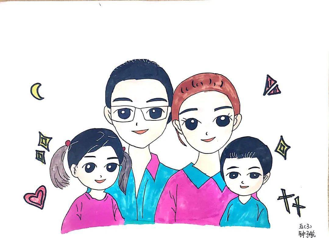 全家福简笔画五口之家手绘全家福详细步骤