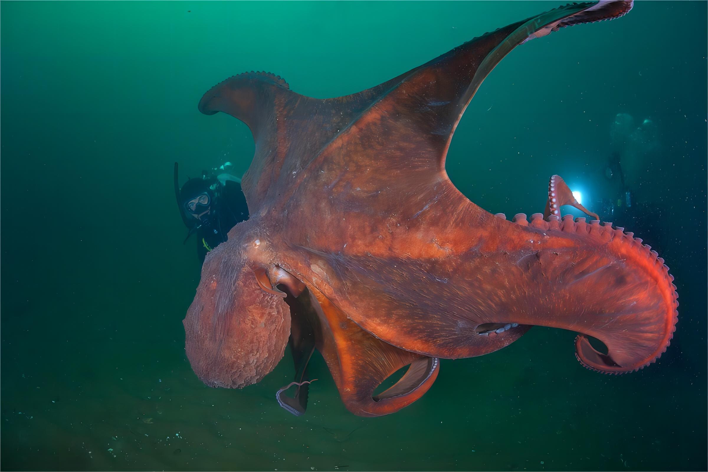 2020年9月14日报道,太平洋巨型章鱼是目前发现的最大章鱼种类,摄影师