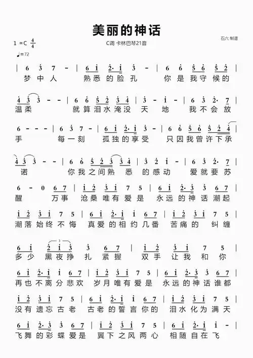 美丽的神话高清版简谱