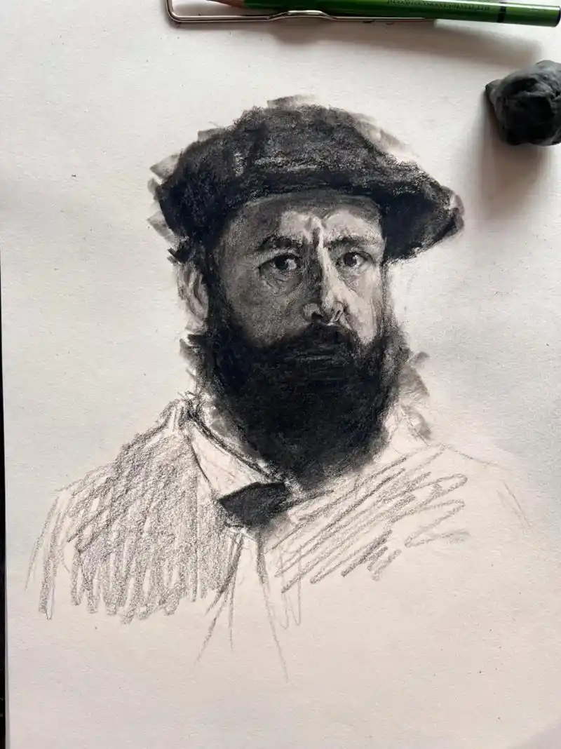 突然之间想画一张不断追逐太阳的印象派领导者莫奈自画像