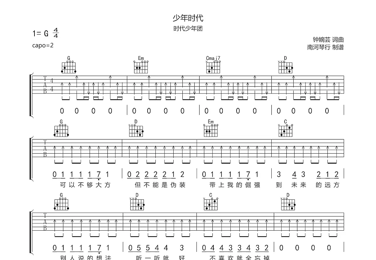 少年时代吉他谱_时代少年团_g调弹唱65%单曲版 - 吉他世界