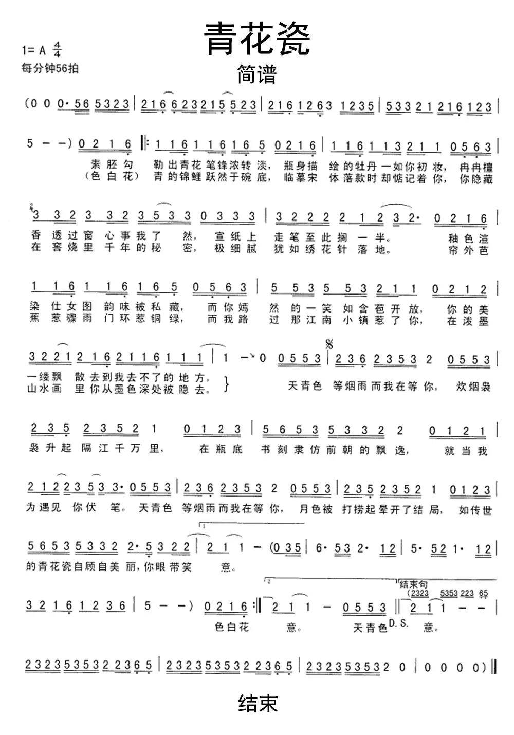 《青花瓷》简谱 《青花瓷》简谱