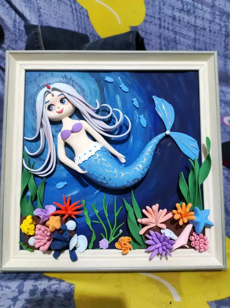 粘土浮雕 #手工diy 美人鱼 - 抖音