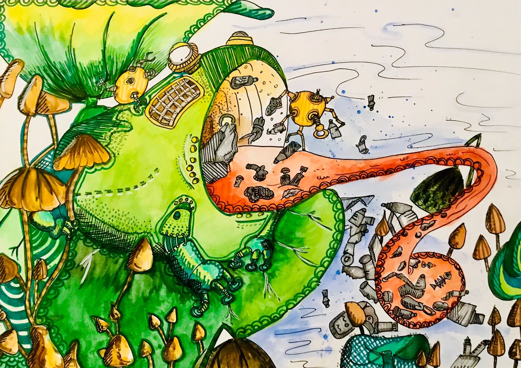 初中组绘画大赛获奖作品《共生》
