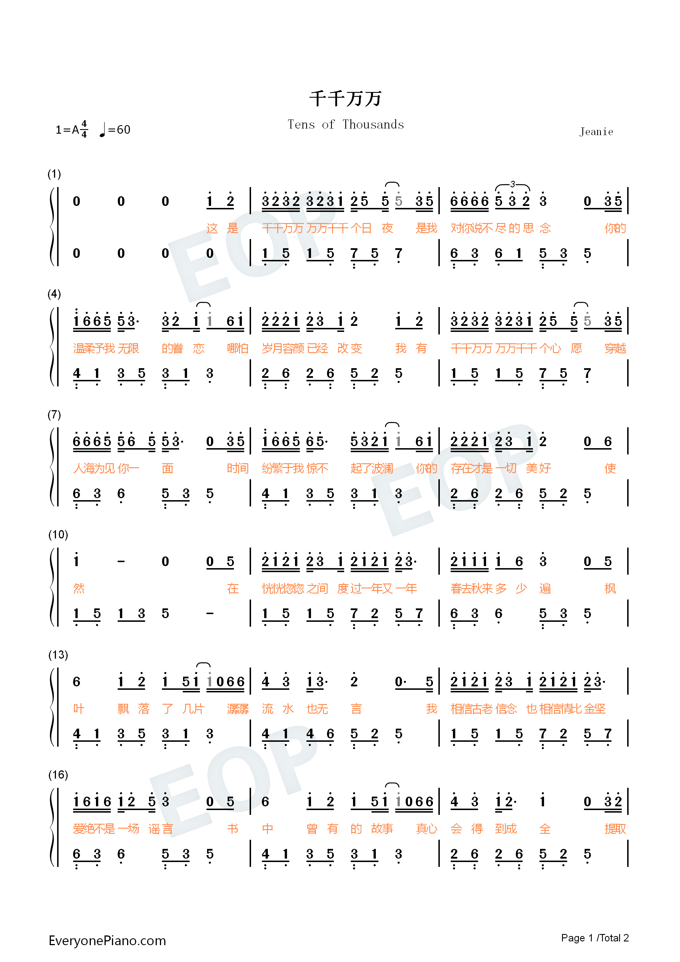 千千万万万万千千个日夜是我对你说不尽的思念-抖音热歌双手简谱预览1