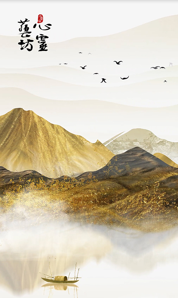 新中式意境金色山水日出装饰画图片10630x4724dpi150psd模版下载