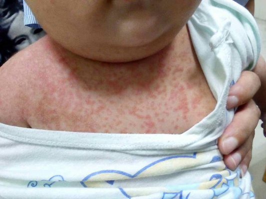 3岁半宝宝起疹子,看看是什么疹?发烧39.5度