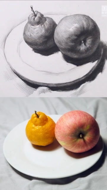 在线学画画 素描静物组合 盘子水果#画画 #素描