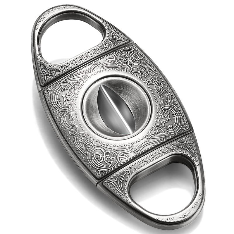 茄龙cigarloong雪茄剪便携式双刃不绣钢精美雕花雪茄钳v型锋利雪茄开