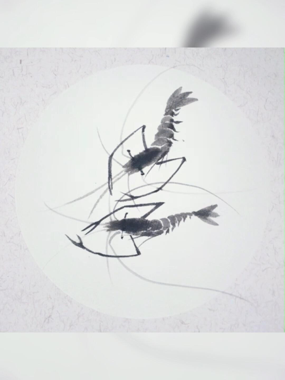 水墨画虾#写意国画画虾 #学白石老人画虾@香墨曦画廊 @沈彬 - 抖音