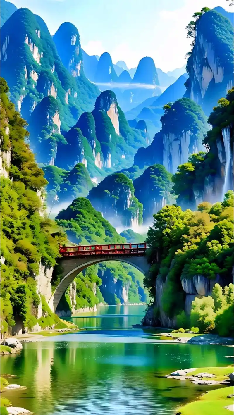 人间仙境世外桃源江南小镇,春天的桂林山水美景,青山绿水,红色 - 抖音