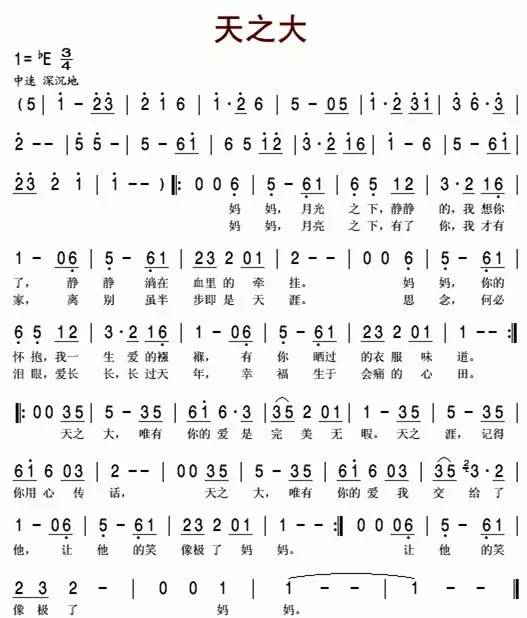 天之大简谱歌谱歌词/介绍 天之大