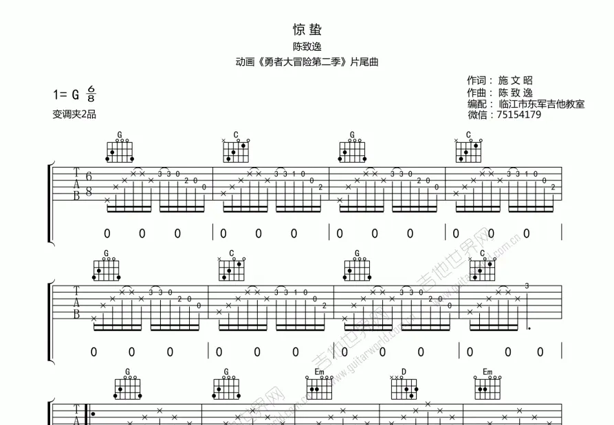 惊蛰吉他谱_陈致逸g调弹唱_东军吉他up - 吉他世界