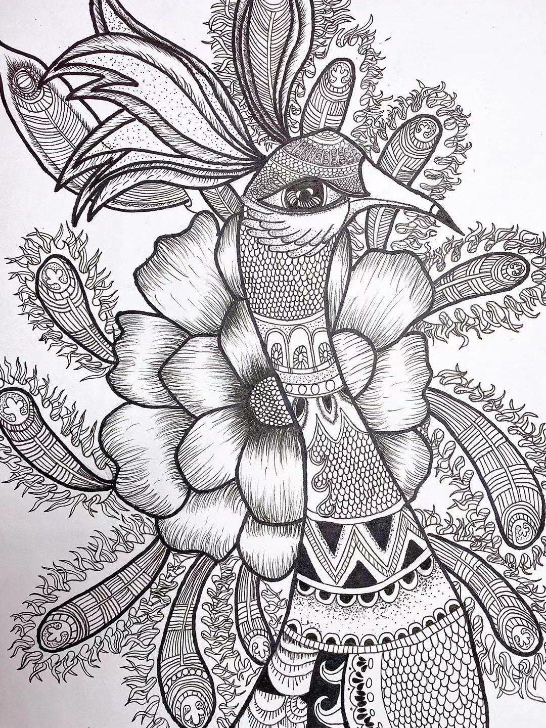 超细致的黑白线描,画了20天才完成18张作品