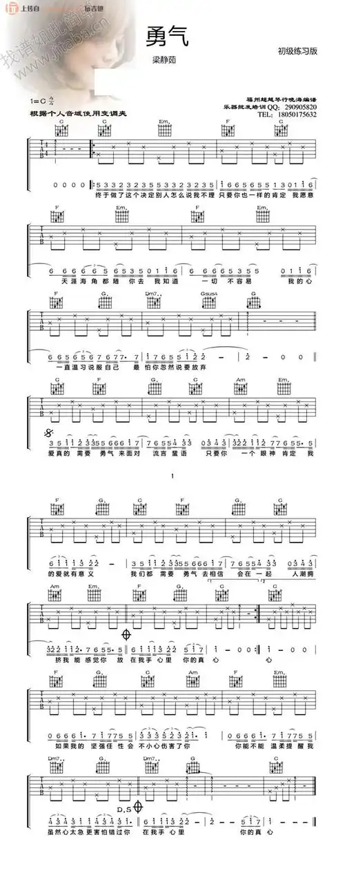 梁静茹《勇气》考级版超清谱 老歌大叔吉他教室出品 谱友园地