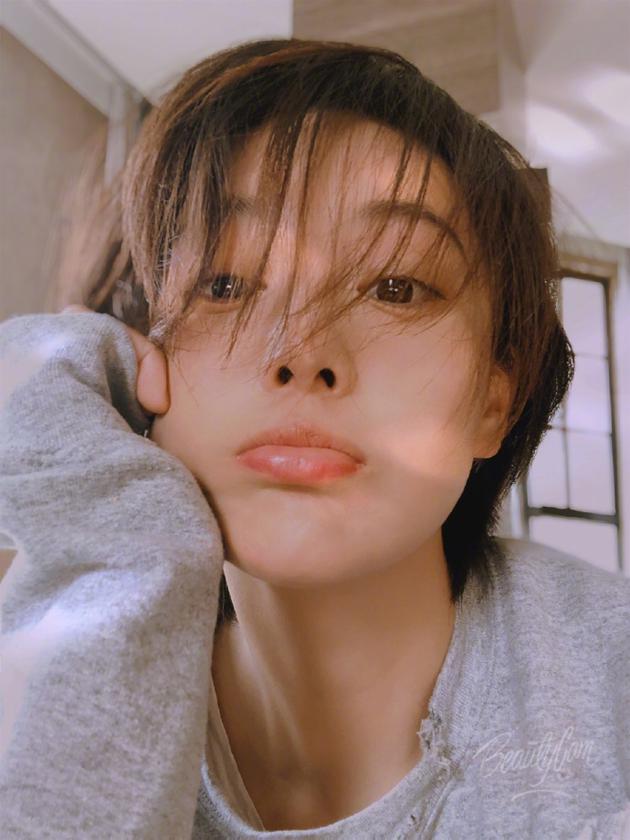 组图:新鲜的自拍!张馨予穿白色上衣素净一头短发攻气十足