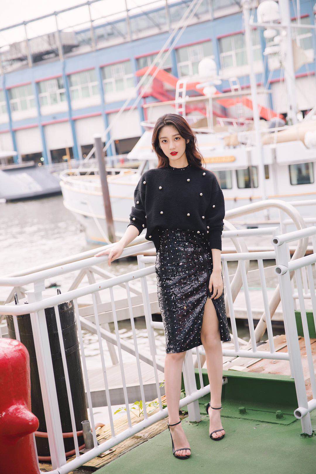 戚砚笛把短裙往上提10cm就穿出了短裤的效果给这双腿跪了