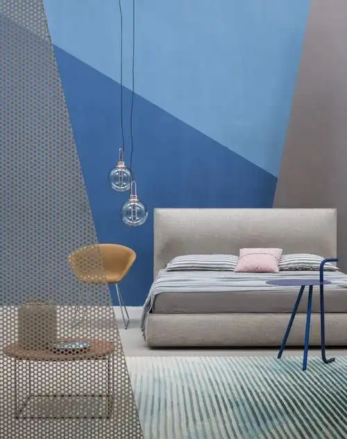 重复秩序感 用重复的几何色块图案砖面装饰卧室墙面,非常丰富有