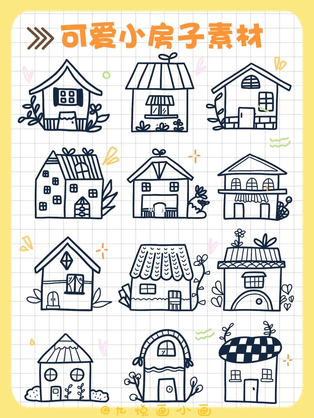 四款小房子简笔画.让我们一起画:铅笔房子,西瓜房,蘑菇房,菠 - 抖音