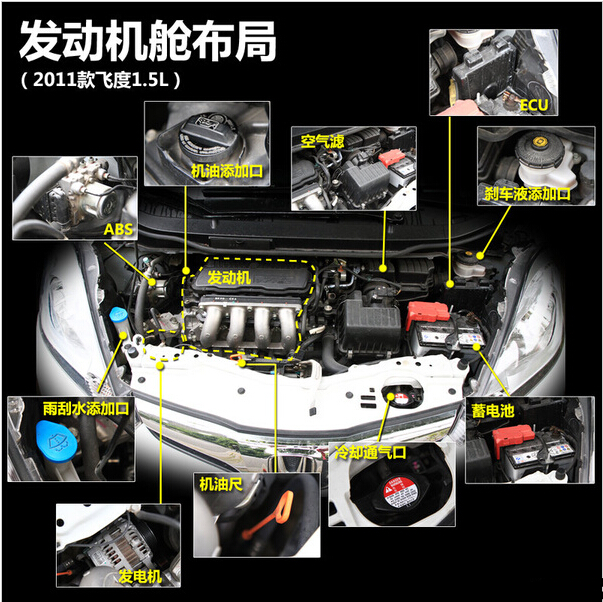 展开全部 汽修机盖里面称谓发动机舱,以2011款飞度1.