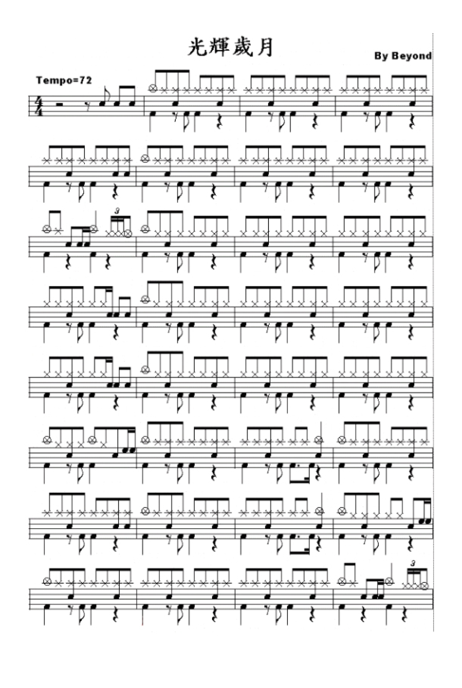 beyond光辉岁月鼓谱架子鼓谱原版鼓谱