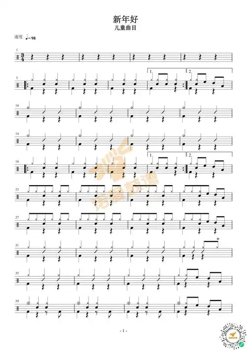 新年好鼓谱 - 儿童曲目 - 架子鼓谱