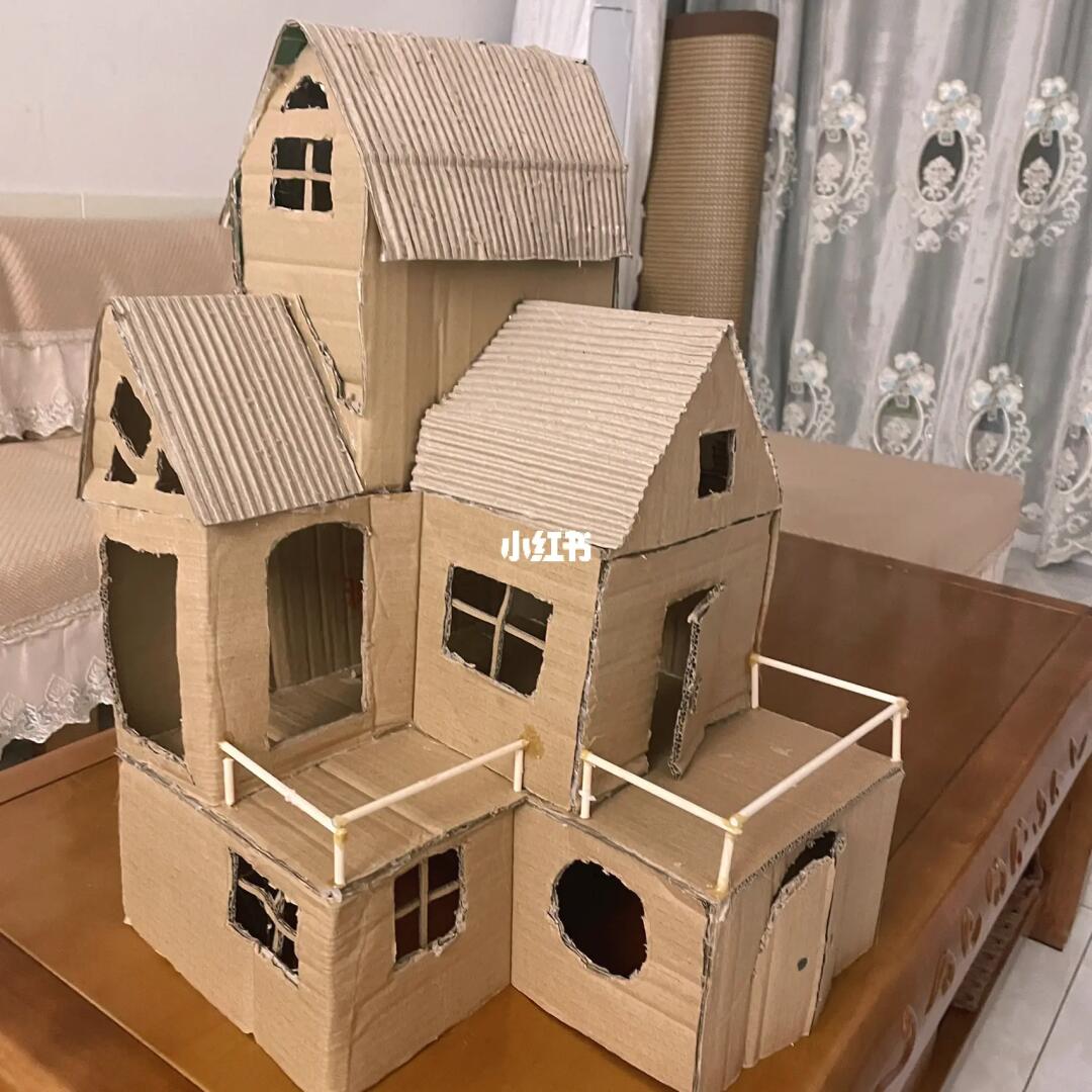 创意手工制作,废弃的纸箱不要扔,教你用纸箱板拼装出漂亮的房子