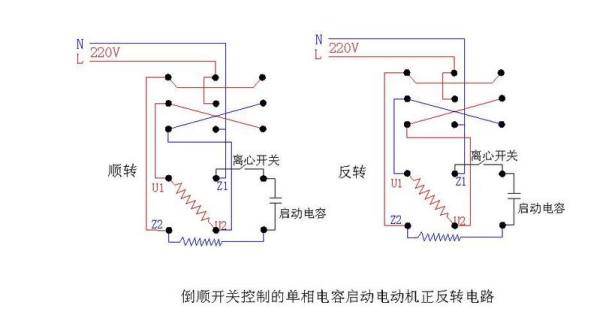 倒顺开关控制单相电机接线图